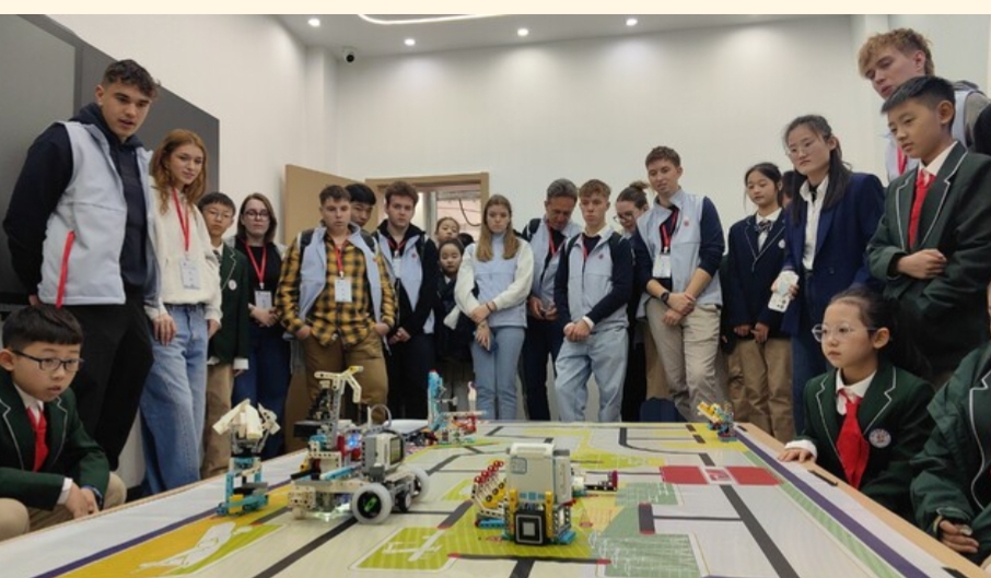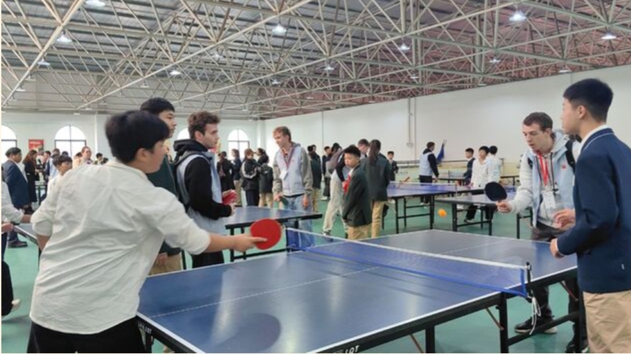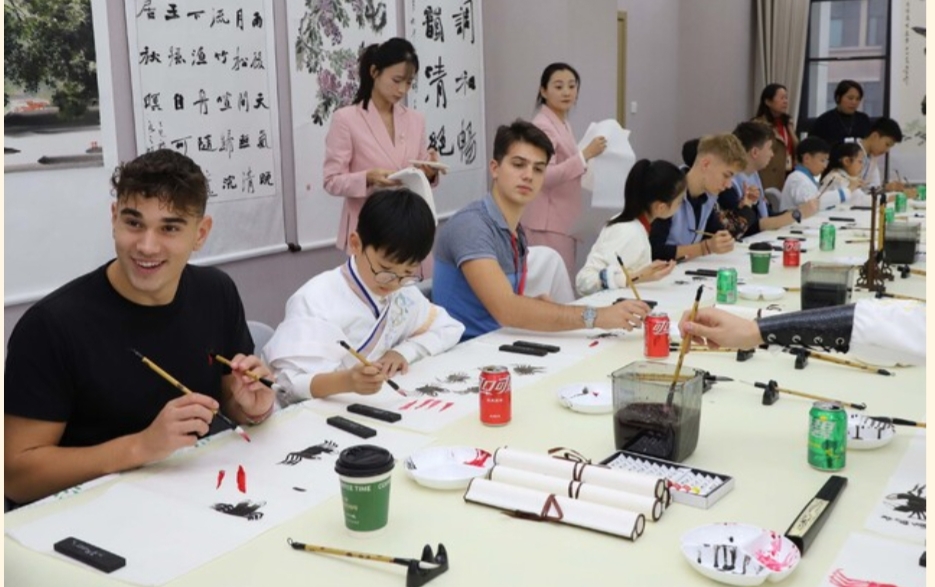在周口新星学校,乒乓球台前的挥拍切磋让清脆球声与欢声笑语交融,瞬间消融语言隔阂;机器人组装课堂上,两国学生结对协作,在指尖搭建中体验创造乐趣;书法教室墨香氤氲,匈牙利学子在老师指导下执笔临帖,感受汉字书写的笔墨韵味;英语分级阅读课上,“一对一”伙伴围绕学业生活、兴趣爱好热烈畅谈,思想碰撞中筑牢友谊根基。