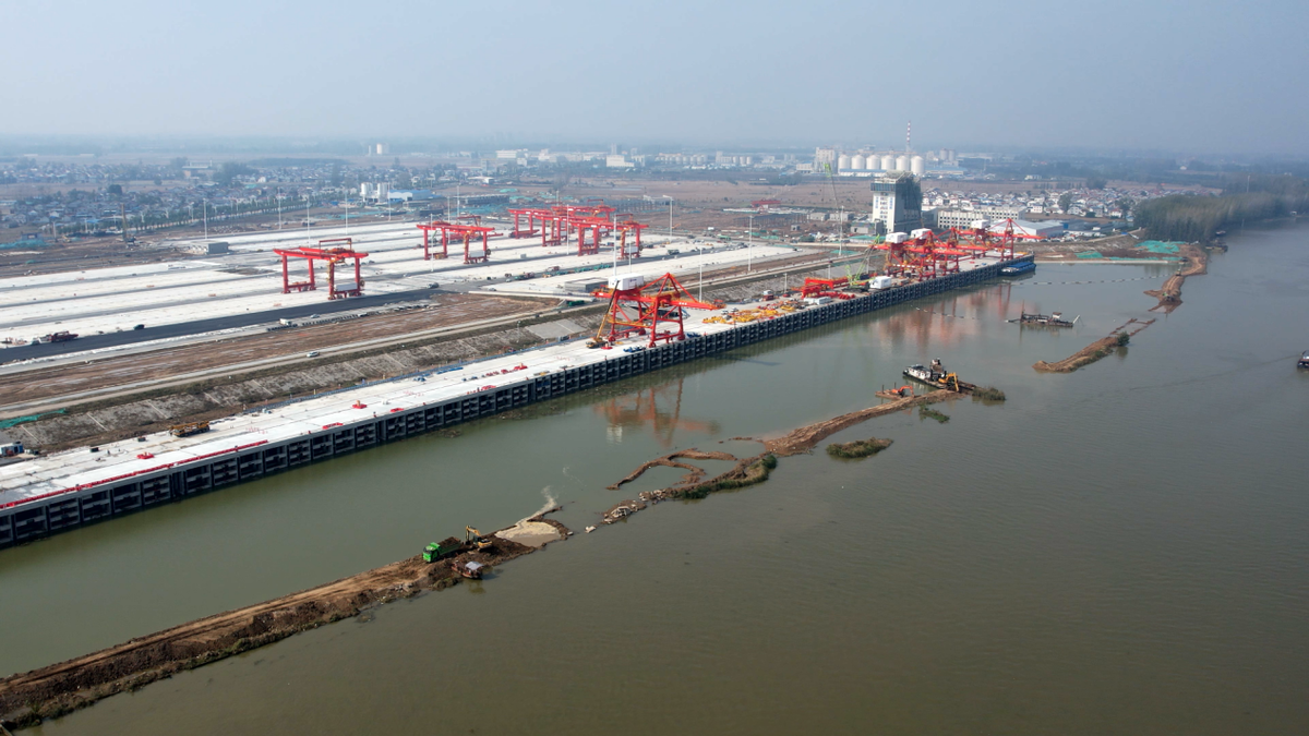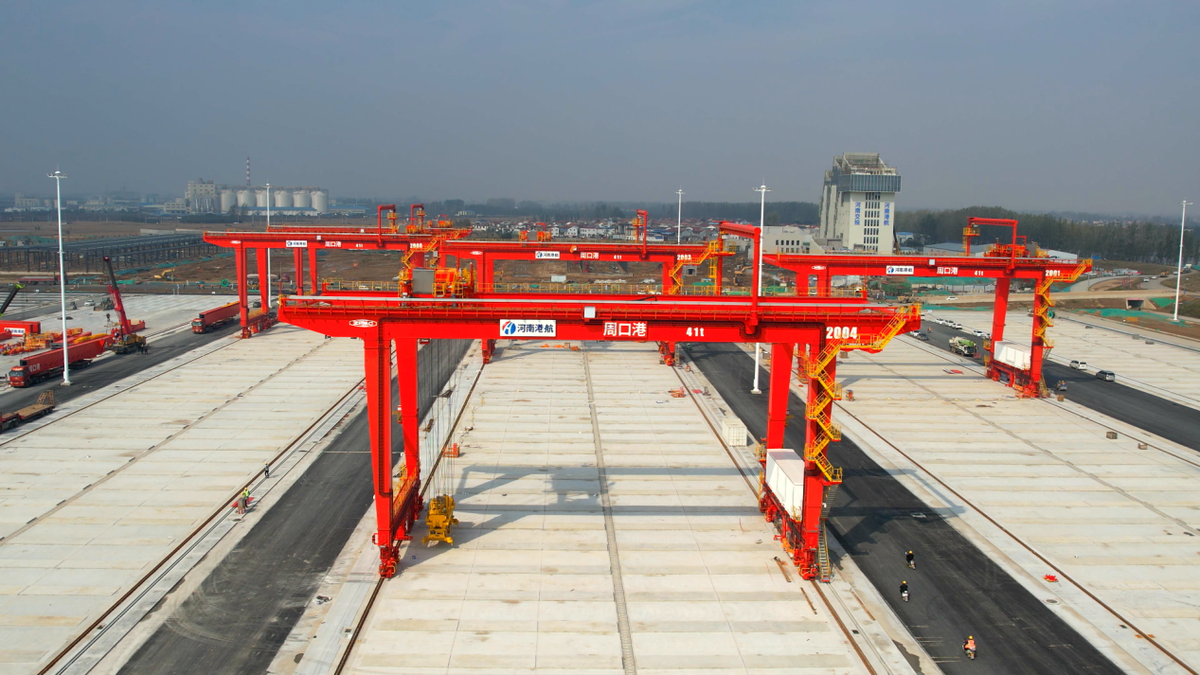 在码头安装现场,第四台岸桥的框架已经立起来了,工人们正在紧张地进行布线作业。据负责现场的上海振华重工内河业务事业部周口港港机设备现场生产经理曾新建介绍说:“第五台岸桥已经在运输过程中,近期就要抵达,第六台月底到位。我们将加快调试进度。预计再有2个月,作业区就能正式开港了。”