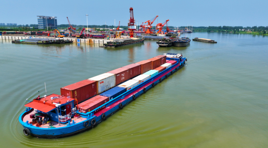 水道联通,激活航运“一池春水”。2023年6月,周口中心港至阜阳港、蚌埠港集装箱航线正式开航,标志着豫皖内河航运合作迈出实质性一步。同年9月,沙颍河—江淮运河—长江干线水网全线贯通,豫货出海、皖货入豫迎来历史性突破。2024年6月,安徽省政府明确以江淮运河为主干,向北连接沙颍河,推动沿线港口协同发展。如今,周口港已与安徽阜阳港、蚌埠港、合肥港、芜湖港实现集装箱通航。