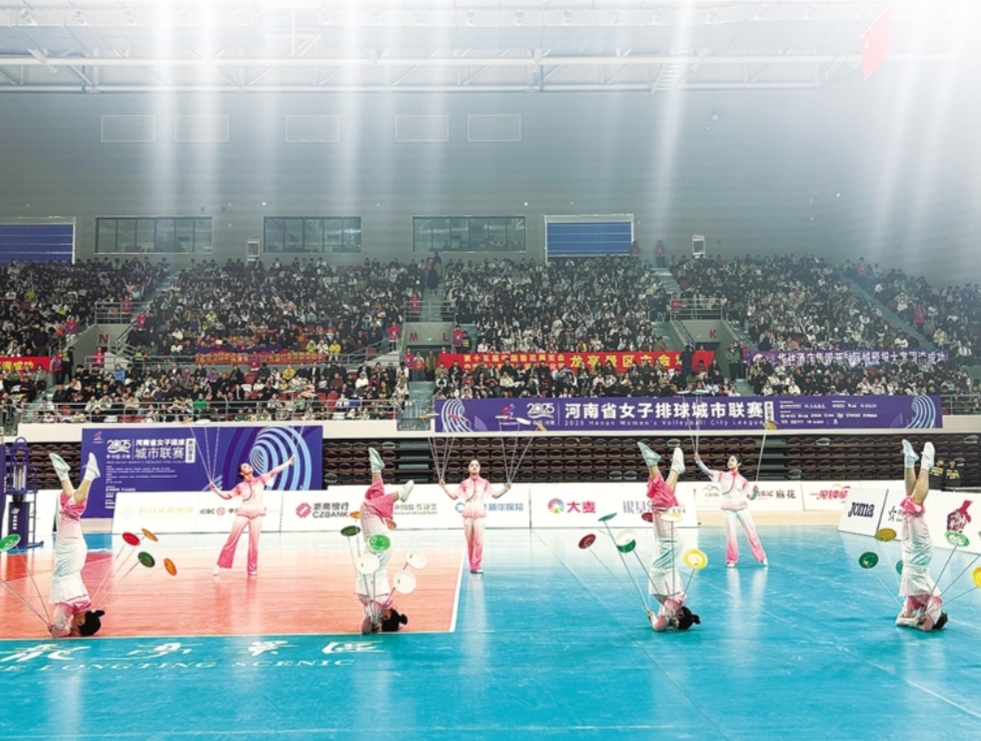 赛前的文体表演环节亮点纷呈。在开封市体育馆,周口杂技表演《花盘》惊艳金场—演员娴熟操控多个旋转花盘,动作行云流水、姿态优雅灵动,在紧凑节奏中完美融合力与美,尽显深厚的文化底蕴;在商丘市体育馆,老子故里的《道·生乐》表演生动演绎了“道”文化,展现了天人合一、乐舞相生的意境,尽显中原文明的博大精深,营造了热烈和谐的氛围,现场掌声此起彼伏。