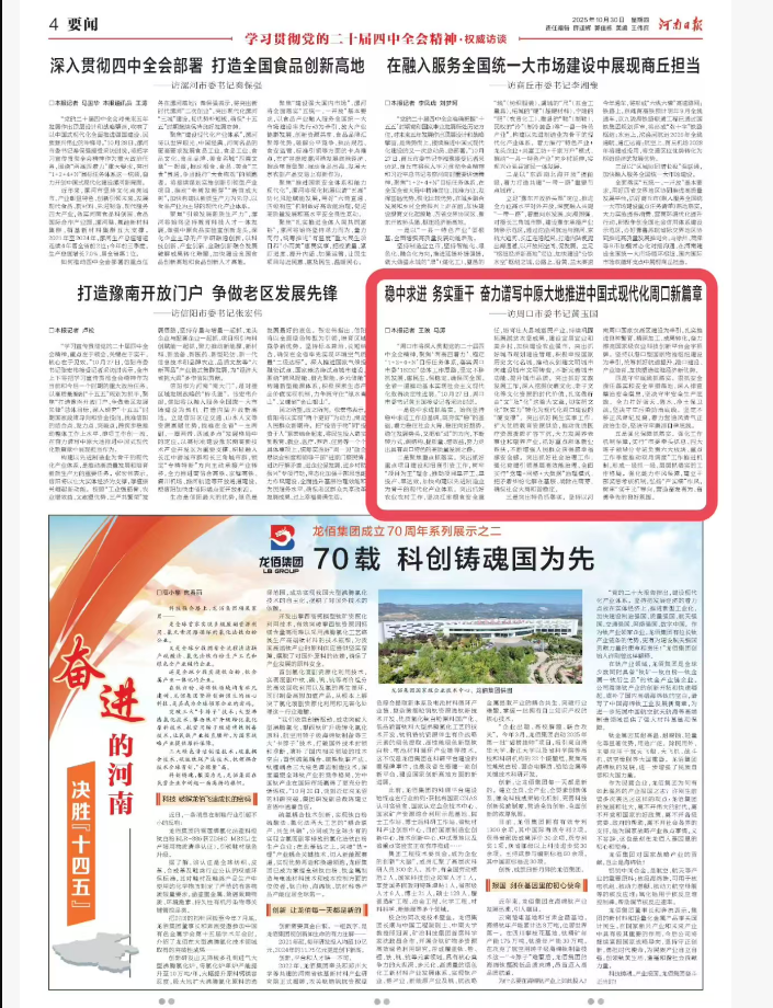 《河南日报》专访周口市委书记黄玉国 查看完整报道>>> 周口市将深入贯彻党的二十届四中全会精神,聚焦‘两高四着力’,锚定‘1+2+4+N’目标任务体系,落实周口市委‘16232’总体工作思路,坚定不移抓发展、惠民生、保稳定,确保同全国、全省一道推动基本实现社会主义现代化取得决定性进展。”10月27日,周口市委书记黄玉国接受记者采访时说。