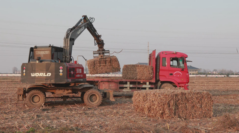 为实现秸秆离田全域覆盖,郸城县农业农村局统筹协调了多家像玖牧草业这样的规模收储企业,构建起高效的联动机制。这些企业共投入近百台专业机械,建立了从“乡镇联系、企业响应”到“田间处理、专车转运”的全链条服务模式,确保了离田工作的迅速推进。