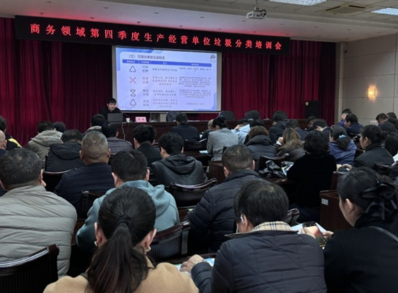 本台讯 为进一步规范中心城区商务领域生产经营单位的垃圾分类工作,推进源头减量,11月7日上午,市分类办联合市商务局组织召开商务领域第四季度生产经营单位垃圾分类培训会,中心城区80余家餐饮、商超企业相关负责人参会。
