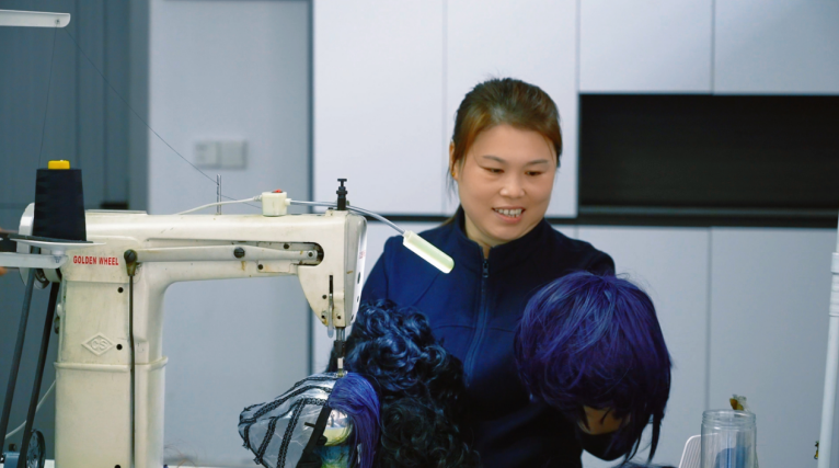 为了在照顾家庭的同时增加收入,她想到了利用闲暇时间做手工活。起初,她从外联系帽饰加工,凭借细心和耐心做出的饰品赢得了客户的认可。近两年,她转而从事假发加工,精湛的手艺让订单源源不断。如今,她的家中已添置三台缝纫机加工台,每天能有近百元的收入,实现了顾家、赚钱两不误。