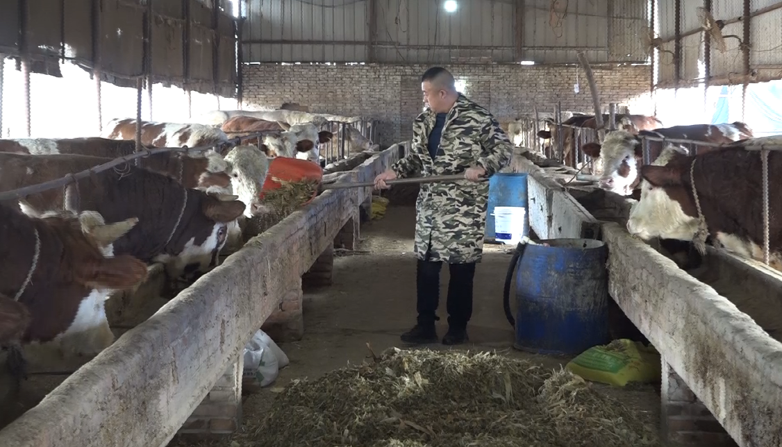 养殖户秦广恩说:“现在牛场喂牛每天消耗秸秆两吨左右,我们计划今年收500吨玉米秸秆,目前秸秆已经收了300多吨,都是从附近的村庄进行回收,这样能减少运输成本,节省一部分资金,喂牛用玉米秸秆也可以减少一些养殖成本。”