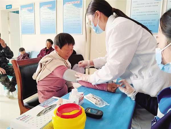 医护人员为群众免费进行心电图检查、血糖检测、血压测量,耐心解答群众疑问,提供个性化健康指导。医护人员还前往慢性病患者、监测户、脱贫户的家中,进行健康随访与健康帮扶,并开展家庭医生签约履约服务,宣传医保惠民政策。