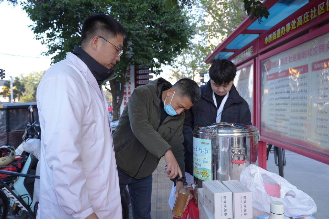 与讲座、视频展播同步进行的,是一场温暖贴心的义诊活动。来自周口市中医院治未病科、糖尿病科、脑病科、心病科、儿科、肺病科、内分泌科等科室的20名医务工作者组成义诊团队,为居民提供免费血压血糖测量、免费中药茶饮、把脉问诊等服务。专家们耐心倾听群众诉求,针对常见疾病提供个性化健康指导,大力弘扬中医药文化,让居民在家门口就能享受到优质医疗服务。