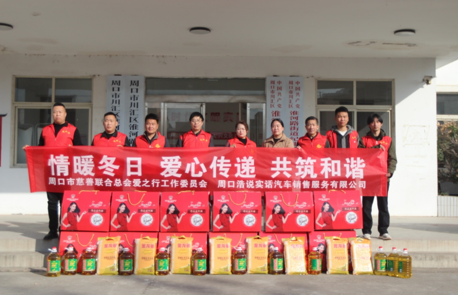 本台讯 11月23日,周口市慈善联合总会爱之行工作委员会携手周口浩说实话汽车销售服务有限公司,走进川汇区淮河路街道康楼、许庄、赵寨三个居委会,开展“情暖冬日 爱心传递 共筑和谐” 慰问送温暖活动,为6户困难家庭送去蚕丝被、大米、食用油等生活物资,让困难群众在寒冬时节感受到社会大家庭的温暖。