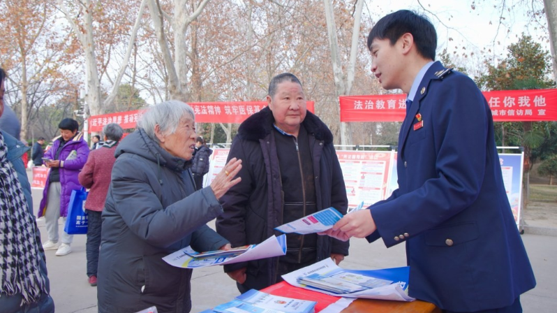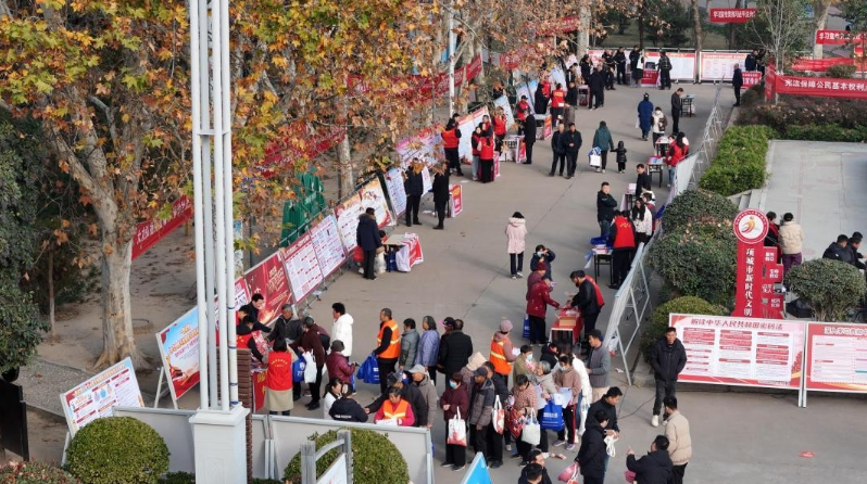 在普法咨询区,项城市法院、检察院、司法局、公安局等部门工作人员和律师组成“普法服务队”,为市民提供法律宣传与咨询服务,进一步营造了尊法学法守法用法的社会氛围。