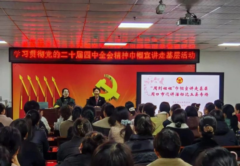 本台讯 本台讯 为深入学习贯彻党的二十届四中全会精神,凝聚巾帼奋进力量,12月5日,“周到姐姐”巾帼宣讲走基层周口市巡讲活动沈丘县专场举行。本次活动以“时代有光 她有力量”为主题,全县100余人齐聚一堂,共同聆听学习,汲取成长能量。