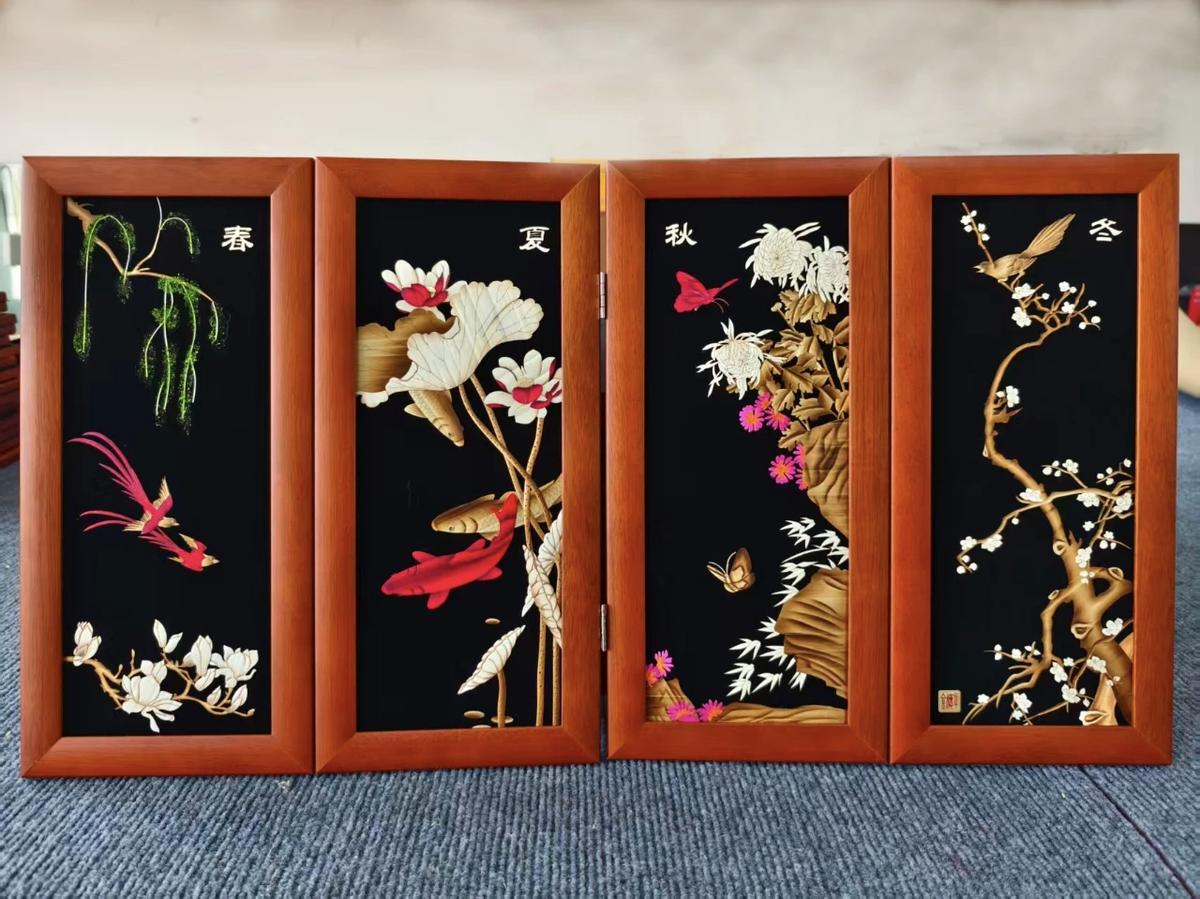 此次民间艺术展中,周口市民间艺术家们以匠心独运的作品征服了评委与观众。葛磊的芦苇画《四条屏》以其细腻的笔触、生动的画面和深厚的文化底蕴,荣获最佳传承奖,展现了芦苇画这一传统技艺的独特魅力;王国华与王志文合作的青铜器《青铜禁》则以其精湛的铸造工艺和古朴典雅的造型,荣获优秀展示奖,彰显了青铜器艺术的厚重与辉煌。
