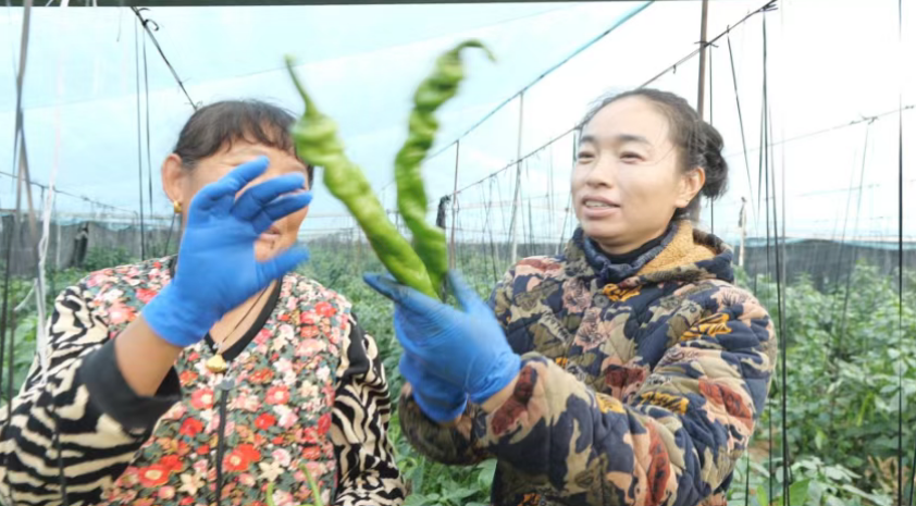 “农闲的时候来大棚干活,每天摘辣椒能收入一百多元,补贴家用很方便。”村民张豫驰一边麻利地采摘一边笑着说道。和刘秀英一样,许多周边村民在这里找到了既能照顾家庭、又有稳定收入的工作。这份“离土不离乡”的就业模式,让村民在参与产业发展中获得了实实在在的获得感和幸福感。