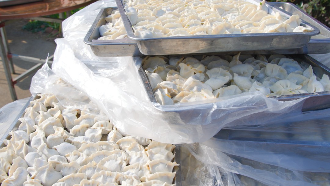 一大早,项城市付集镇韩营村委会的院子里就热闹起来,20多位村民志愿者与村干部分工明确、默契配合,填馅、捏合的手法娴熟,不一会儿,饱满圆润的饺子便摆满了数十个托盘,满院的烟火气里藏着最真挚的温情。
