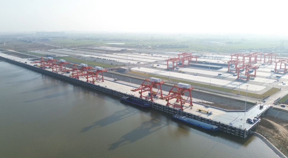 截至目前,一期工程的码头主体及附属结构、退建大堤、A区堆场已全部完成建设。B区与C区堆场的管桩、轨道梁及土方工程也基本结束。附属建筑区各主体结构、进港道路及指挥中心房建项目正处于收尾阶段,开港前各项筹备工作正在有序推进中。