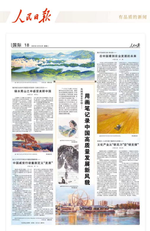 “十四五”时期,中国式现代化迈出坚实步伐。脱贫攻坚战取得全面胜利,中华文化影响力不断增强,美丽中国建设取得显著进展,高水平对外开放成果丰硕。一些来华工作、学习、采风的外国画家以不同艺术形式,记录中国各地的山水、人物与故事,生动描绘中国在实施精准扶贫、弘扬中华优秀传统文化、保护生态环境等领域的实践成果,展现中国高质量发展新风貌。