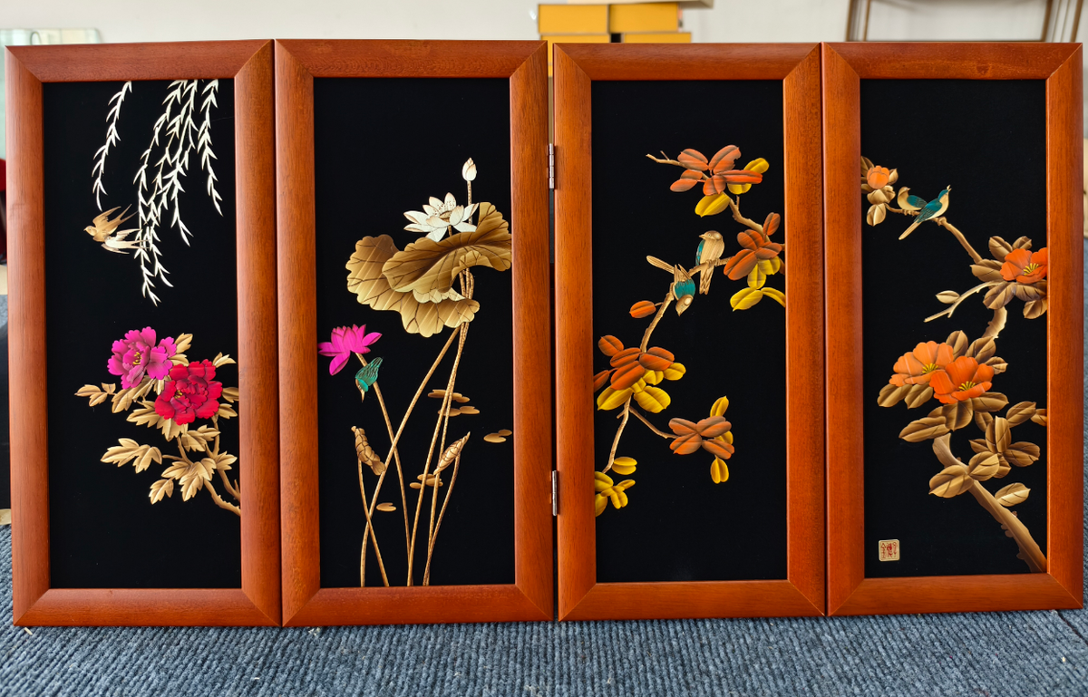 《四条屏》由淮阳区省级非遗芦苇画传承人葛磊创作,《草帽虎》由泥泥狗国家级非遗代表性传承人许述章创作。两件作品充分展现了淮阳区非物质文化遗产保护传承工作的丰硕成果。