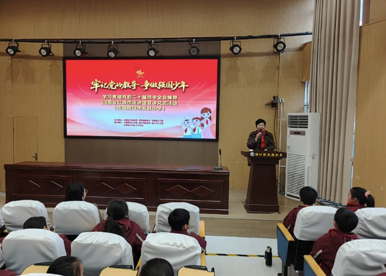 本台讯 近日,由共青团河南省委、省教育厅、省少工委主办,共青团周口市委、市教体局、市少工委、省少先队工作学会联合承办的“牢记党的领导 争做强国少年”学习贯彻党的二十届四中全会精神河南省红领巾巡讲团宣讲交流活动在周口市文昌小学和淮阳外国语实验小学成功举办。主办、承办单位有关负责同志,省市红领巾巡讲团成员代表、少先队辅导员及少先队员代表等700余人参加活动。