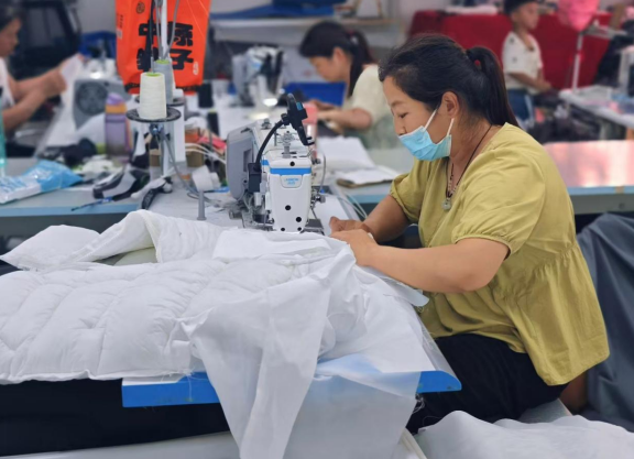 该镇针对企业的实际诉求,统筹乡镇便民服务中心、人力资源、宣传等部门,聚焦企业用工、用地等发展难题,协调联系镇域内的三家银行支持企业融资,帮助企业升级设备、扩大经营规模、筑牢安全防线。同时为保障产业可持续发展,该镇引导企业创新经营模式,利用电商直播平台拓宽销路,提升产品溢价能力,推动产品从“低端制造”向“中高端定制”转型。