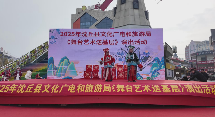 本台讯 近日,由沈丘县文化和旅游局主办的“村歌迎新年 非遗贺佳节”村歌·非遗进商圈文艺汇演在沈丘县快乐小镇西广场圆满落幕,吸引了众多市民游客驻足观看。