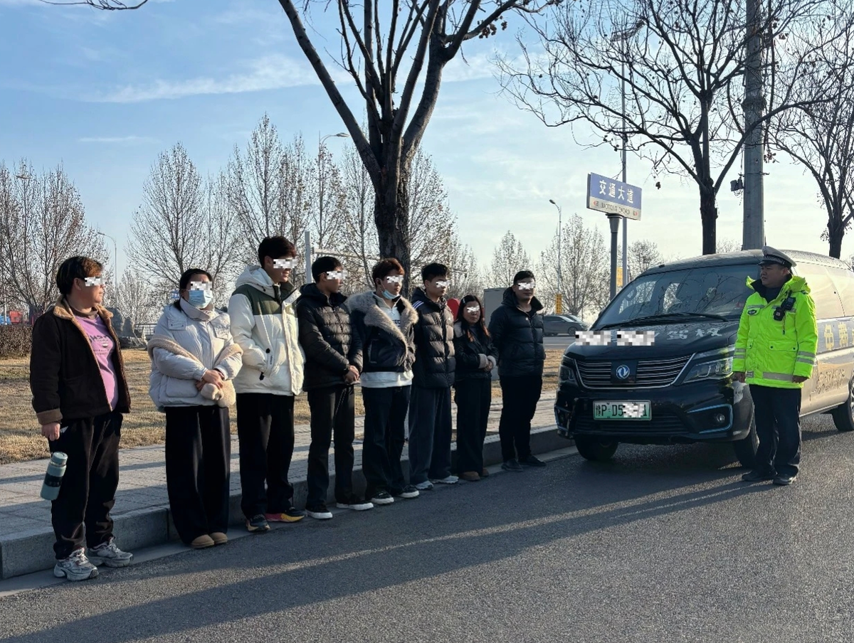 12月26日,周口市公安局交警支队直属四大队民警带领队员巡逻至市区交通路与武盛大道交叉口时,发现一辆豫PD5***1新能源车内人员拥挤,存在超员嫌疑。经拦停核查,该车属某驾校学员转运车,核载7人,实载8人,已构成“载客汽车超员未达20%”违法行为。驾驶员刘某解释称,因学员考试时间紧张,为赶路才多载一人。民警依法对其处以罚款100元,并现场开展警示教育,对学员进行普法宣传。刘某诚恳认错并承诺绝不再犯,超员学员随后转乘公共交通前往考场。
