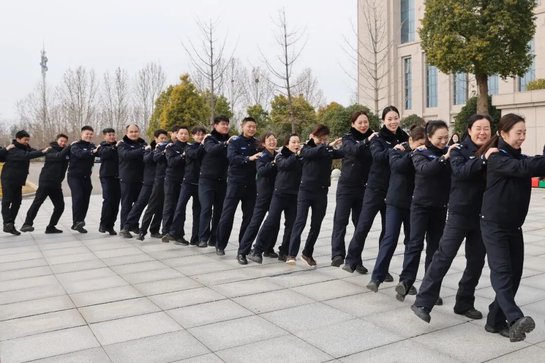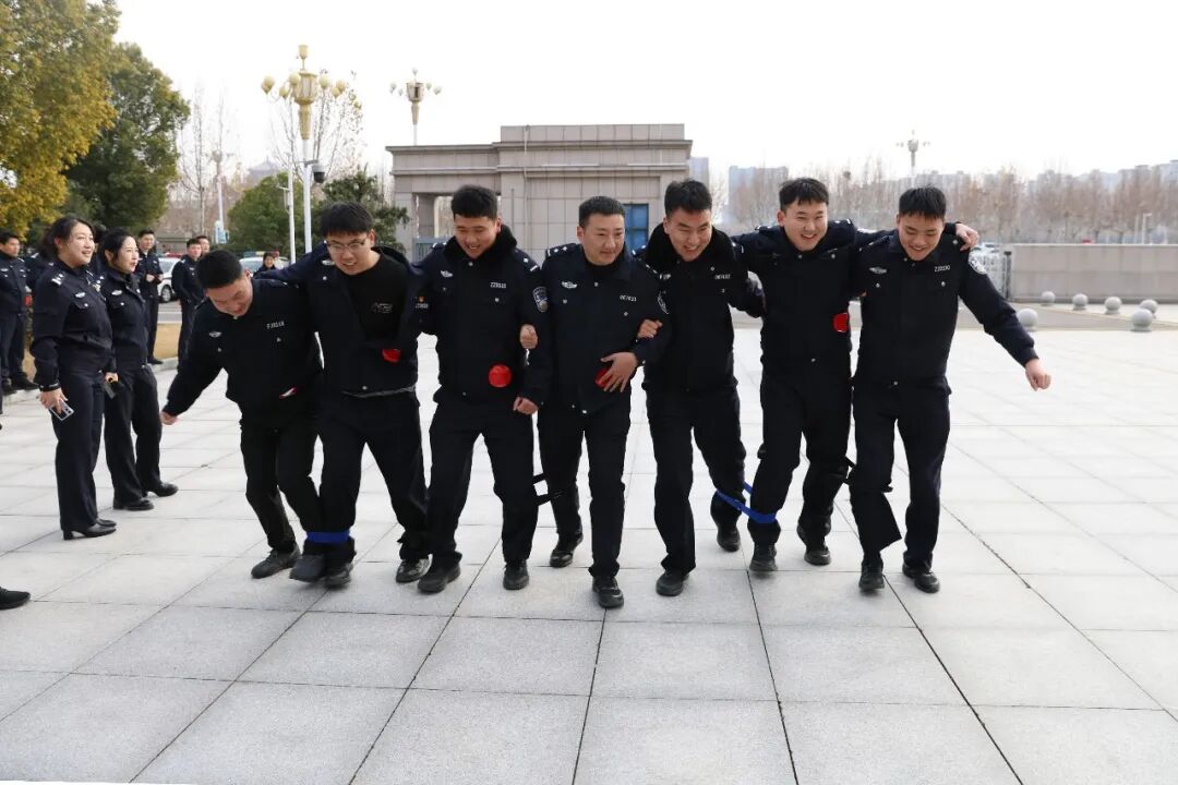 活动围绕团队协作与情感融合展开,设有多个轻松有趣又富含意义的环节。开场“欢乐警营操”迅速点燃气氛,拉近了彼此距离;“同心协力”接力赛与“砥砺前行”履带竞走考验团队默契,大家在配合中步调一致、携手前行;庄严的“护送警旗”仪式,则进一步激发了全体人员的职业荣誉感和使命感。