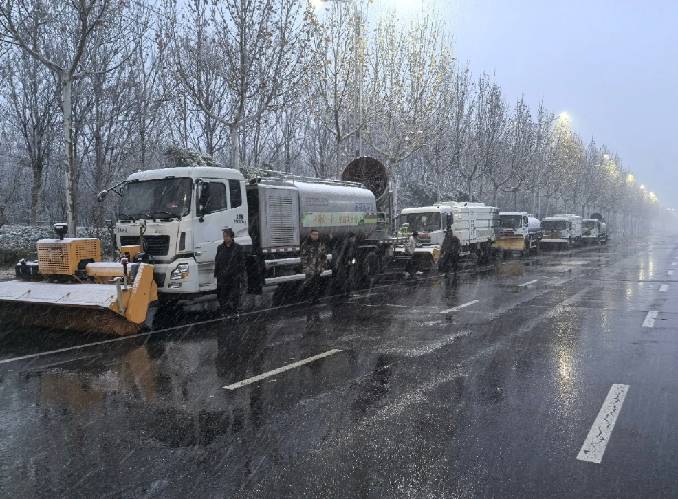 机械装备保障是应对雨雪冰冻的关键支撑。周口市城管局要求各区城管部门提前对各类除雪机械进行全面检修、保养和调试,确保所有设备性能完好、状态稳定。目前,已完成120余台除雪车、撒布机、铲雪机等专业机械的部署调度,按照“分片负责、就近调配”的原则,明确各机械作业区域和应急响应路线,实现中心城区重点路段、桥梁、隧道等关键节点机械覆盖无死角,为快速清除道路冰雪、保障交通畅通提供硬核支撑。