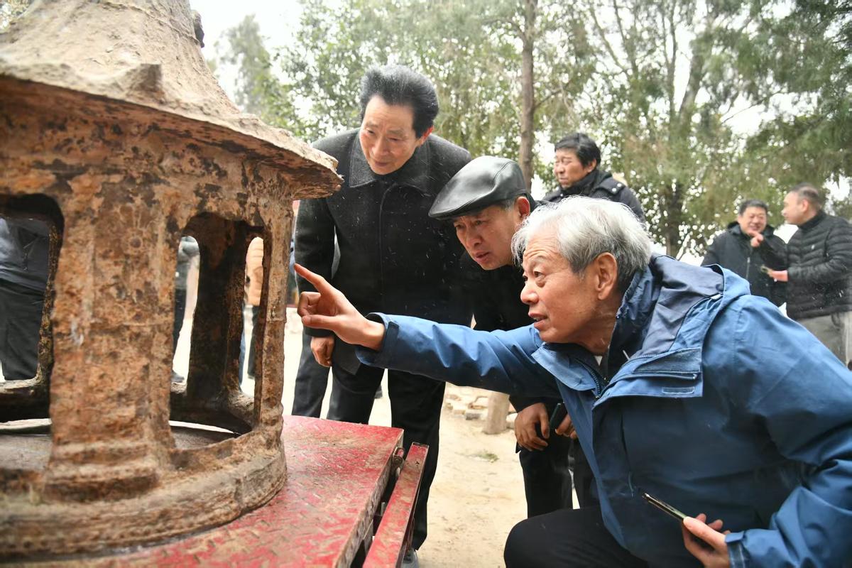 现场,程健君先生不顾风雪严寒,与当地文保人员深入交流,详细询问每一处遗存的保护情况。周口地区远古文化资源丰富,西华县更是盘古文化的重要传承地,相关传说与实物遗存分布广泛。这些珍贵的文化资源,为开展中华远古文化研究提供了不可或缺的实证与信息。