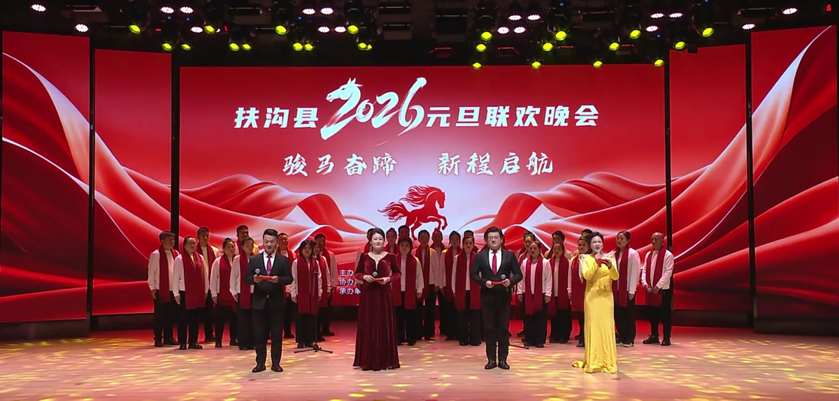 本台讯 2025年12月31日晚,扶沟县融媒体中心演播大厅灯火辉煌、欢歌笑语。由中共扶沟县委宣传部主办,县总工会、县直工委协办的“骏马奋蹄、新程启航”扶沟县2026年元旦联欢晚会隆重上演,扶沟县四个班子与各界群众欢聚一堂,共迎新年。
