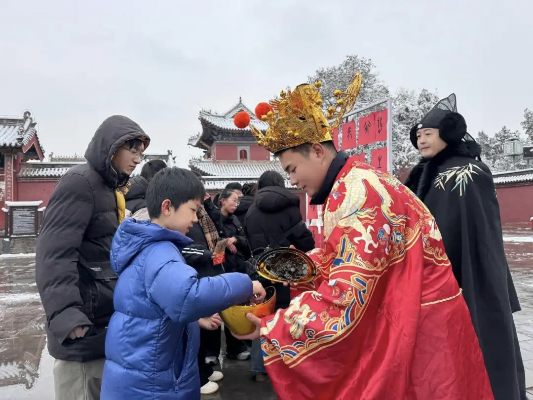 元旦期间,景区以伏羲文化为核心,策划推出系列主题演出与互动项目。值得注意的是,景区创新引入“NPC互动”模式,组织“疯狂动物城”主题角色沿中轴线开展快闪巡游,在与游客趣味互动、合影留念的同时,赠送具有太昊陵文化特色的文创产品,增添了游览的趣味性与记忆点。