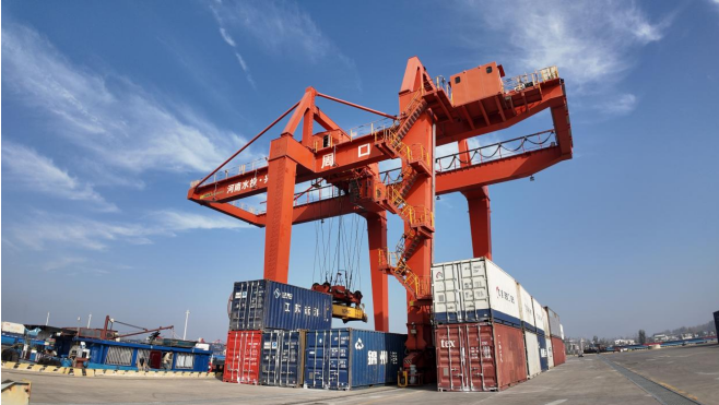 河南港航集团周口港务有限公司副总经理李林涛介绍:“新港口是打造‘百万标箱’大港的核心载体,拥有全省内河规模最大、自动化程度最高的泊位群,设计年吞吐能力超千万吨。这意味着集装箱集散效率和大宗商品承载能力实现质的飞跃,为承接重大产业项目提供硬核支撑。”