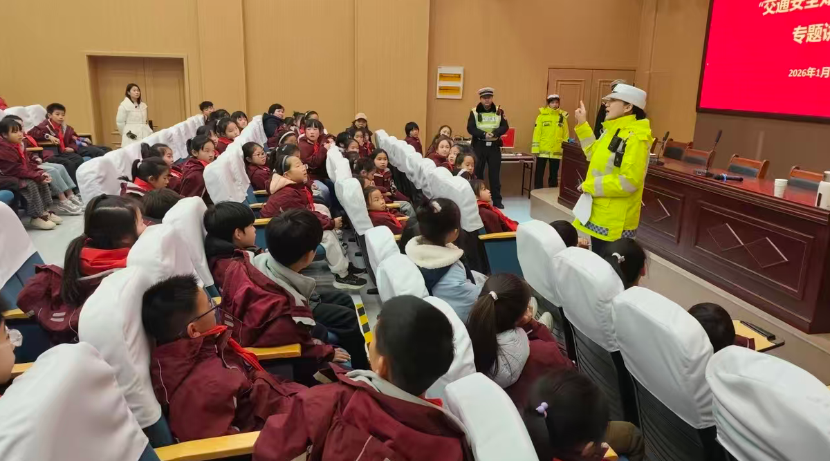 1月8日下午,周口市公安局交警支队直属三大队组织民辅警深入文昌小学开展交通安全主题讲座,通过寓教于乐的形式,为师生及家长代表带来一堂生动的安全教育课。