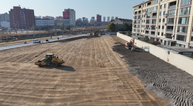 在郸城县方远洺水城附近的一处施工现场,压路机、挖掘机正有序作业,一片原本闲置的土地被平整夯实、铺上砂石。不久后,这里将建成一个整洁规范的停车场,为周边居民和商户提供便利。