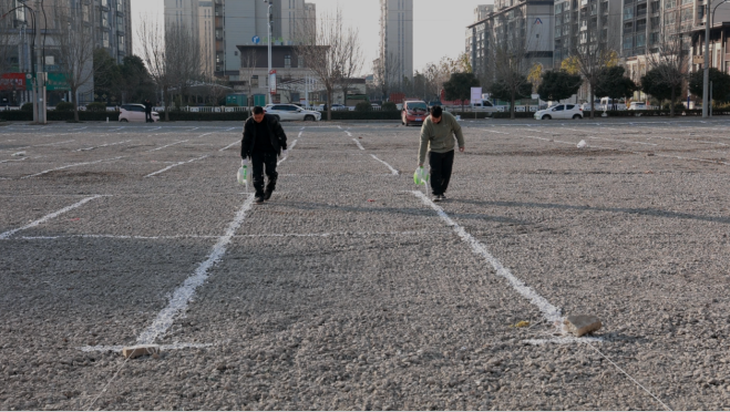 施工负责人闫亚杰说:“我负责这四个停车场大概是46亩,可以整出来2000多个停车位,现在正在紧张施工中,争取早日完工。”