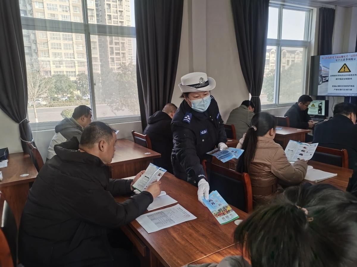 会上,支队直属二大队民警通过深入剖析典型事故案例,集中警示曝光了“无证运输”“车辆非法改装”“动态监控人为中断”等突出违法行为的严重危害,要求各企业必须深刻吸取教训,牢固树立“隐患就是事故”的底线思维。同时,还重点讲解了危险化学品运输车辆在出车前、行驶中、收车后及应急处置等环节的安全注意事项,并向参会企业代表发放了安全宣传彩页。