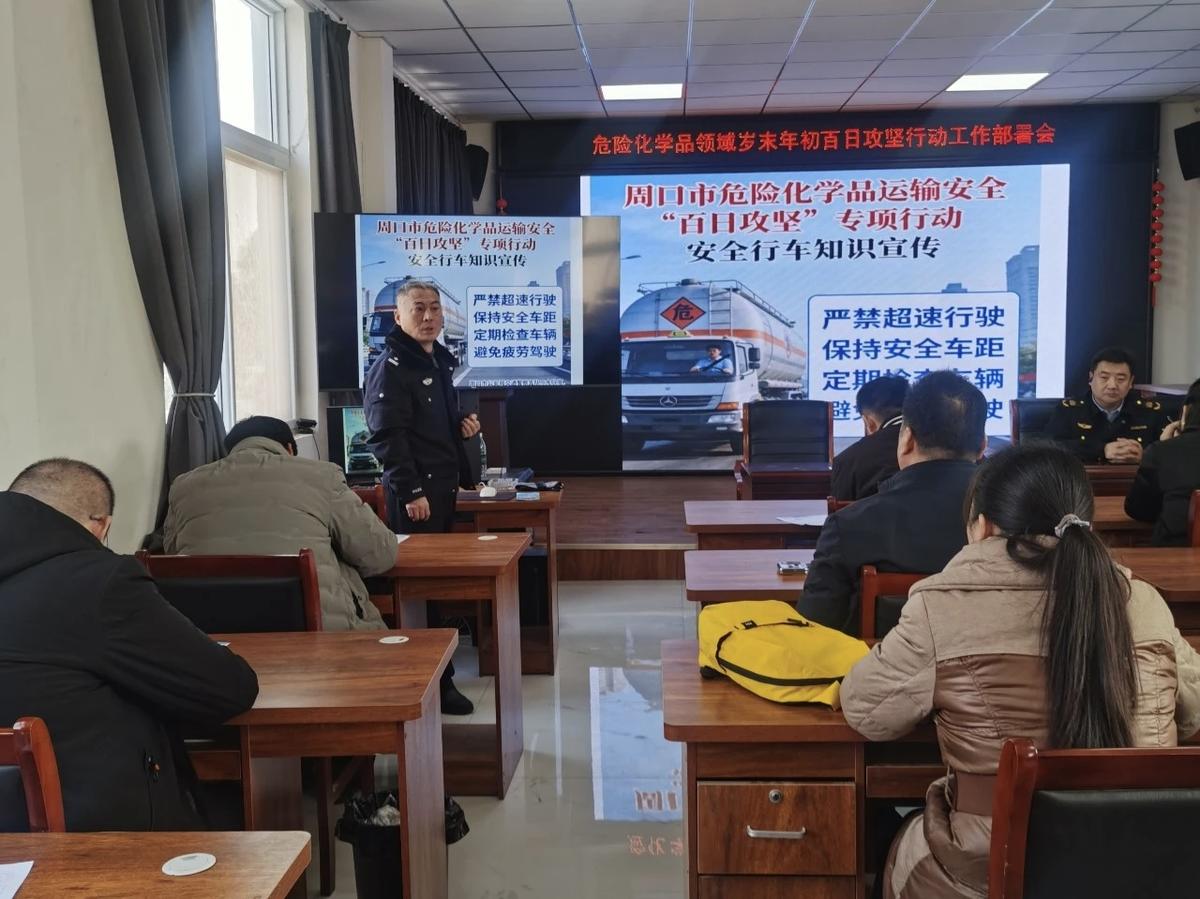 本台讯 为坚决防范和遏制危化品道路运输安全事故,全力维护人民群众生命财产安全与社会稳定,按照全市危险化学品领域岁末年初“百日攻坚”专项行动方案要求,1月16日,市公安局交警支队联合川汇区交通局组织辖区危化品运输企业召开专题安全会议,强化对从业人员的警示教育,切实从源头上加强监管,确保“百日攻坚”专项行动取得扎实成效。