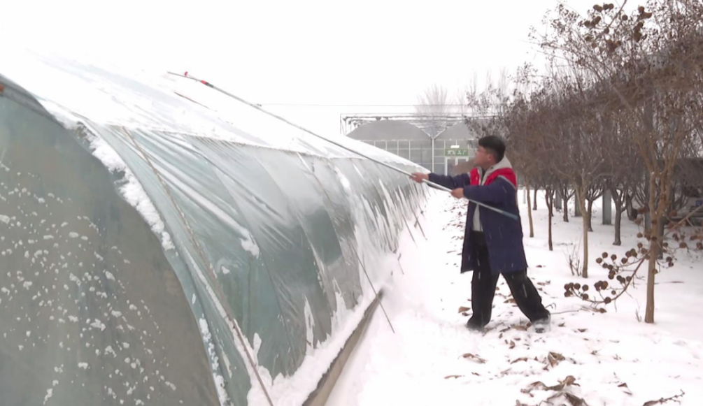 扶沟县蔬菜发展服务中心主任娄红伟:“提醒广大菜农做好防灾、防冻害应对,防止棚体坍塌、蔬菜低温冻害、高湿寡照诱发病害,最大限度降低生产损失。降雪期间,每2-3小时清除棚顶积雪,积雪达到5厘米必清,若积雪过厚,可破膜放雪保棚架。雪后采用三段式揭被法,防止温差过大‘闪苗’。提醒大家紧盯天气预警,备足除雪、加温、抢修物资,确保棚体安全和蔬菜稳产。”