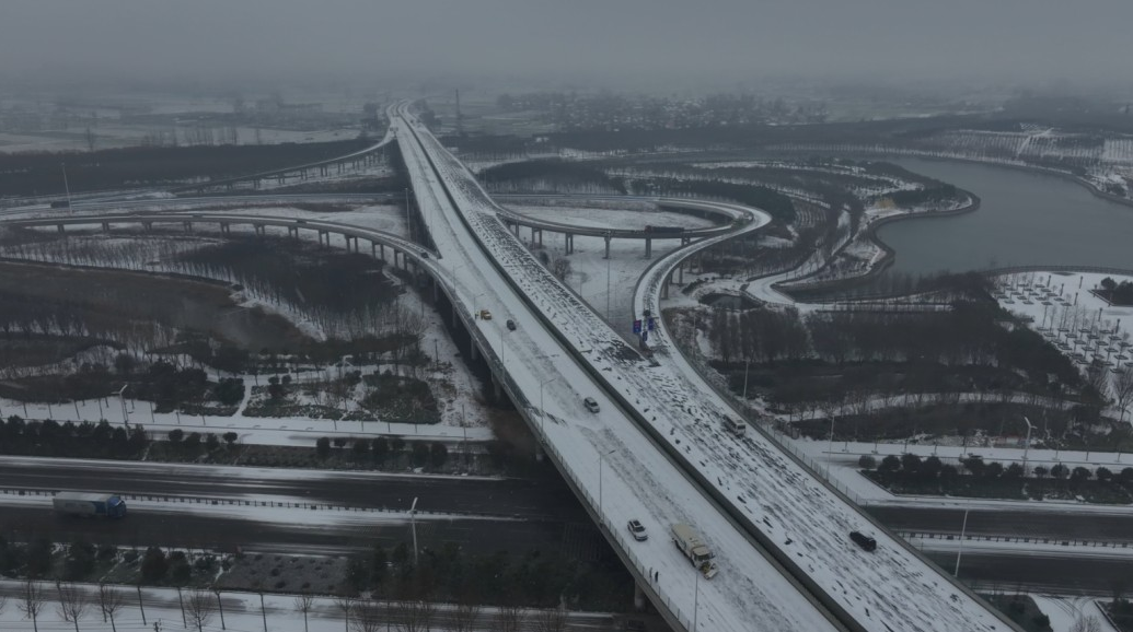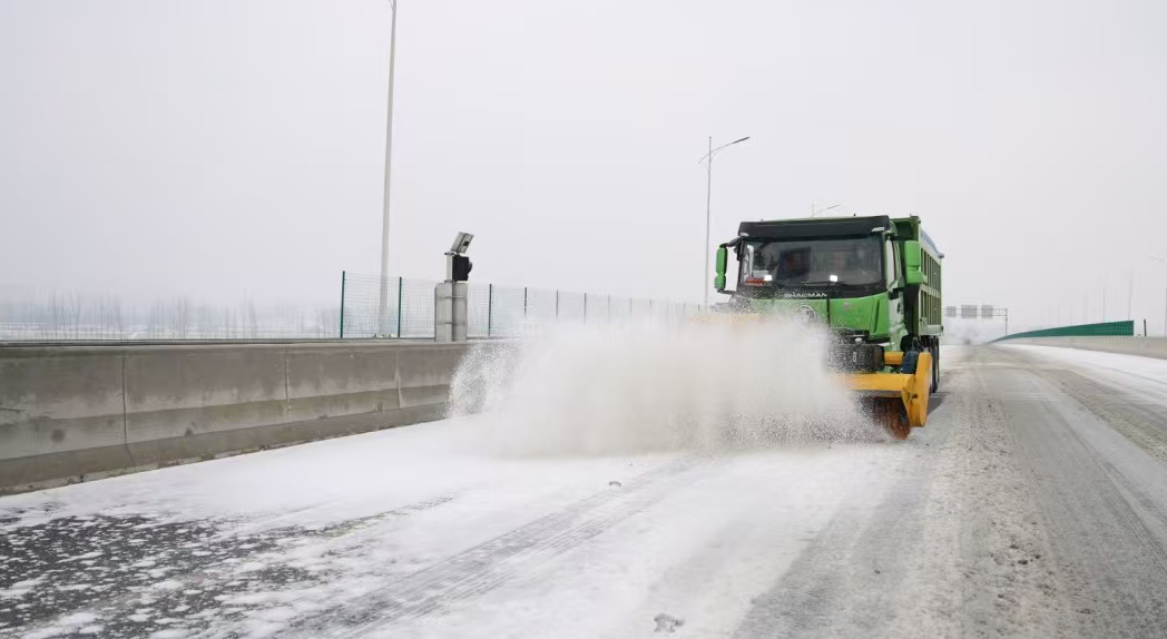 在项城市西环路沙颍河大桥作业现场,除雪车轰鸣前行,滚刷高速转动清除主路积雪,融雪剂精准撒布,有效防止路面结冰。作业队伍严格遵循“先主干后支线、先桥梁后平路”原则,优先对桥梁、陡坡、弯道等易结冰、易拥堵关键点位开展作业。同时在重点路段布设警示标志、警示灯,提醒过往驾驶员减速慢行、谨慎驾驶,引导车辆安全有序通行。