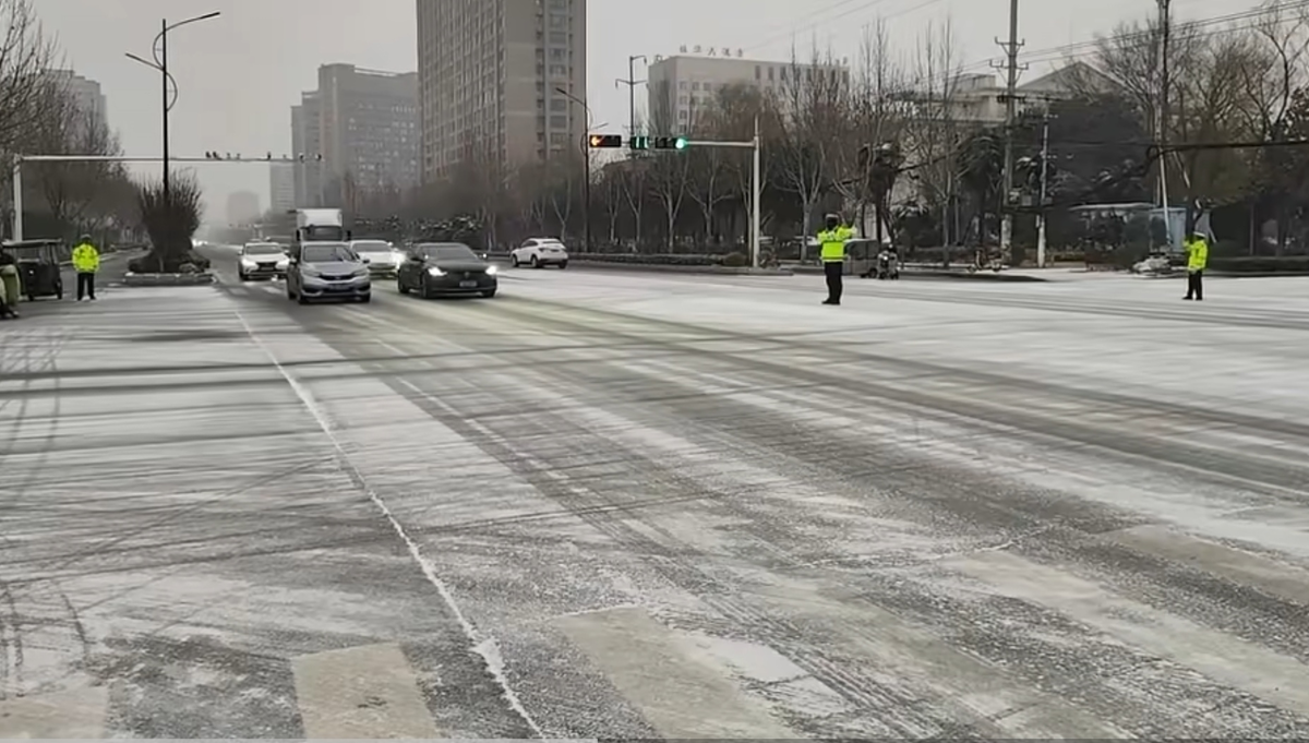 本台讯 近日,受寒潮天气影响,沈丘县迎来大范围降雪,辖区道路湿滑结冰,给车辆通行带来安全隐患。沈丘县公安局交警大队闻雪而动,第一时间启动恶劣天气应急预案,全员上岗投入雪天道路交通安全保畅工作,全力守护群众出行平安。