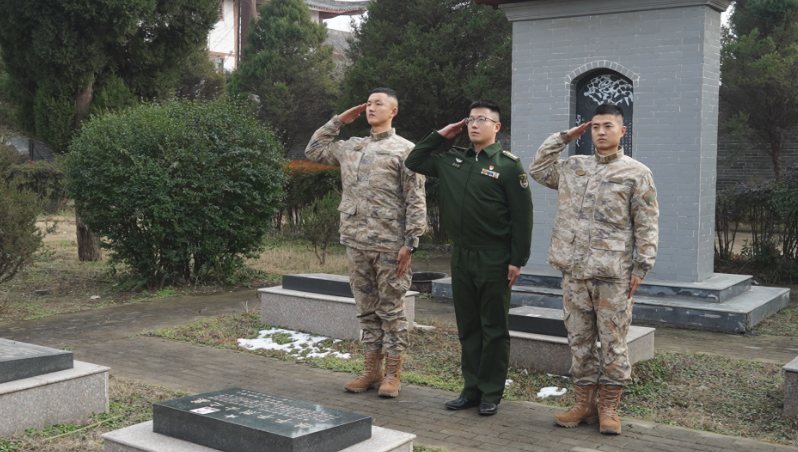 1月28日,春节前夕,淮阳烈士陵园庄严肃穆。来自千里之外的陈平平烈士生前所在部队的三名战友专程来到这里,在烈士墓前敬献花篮、默哀致敬,缅怀这位在专项任务中英勇牺牲的烈士。