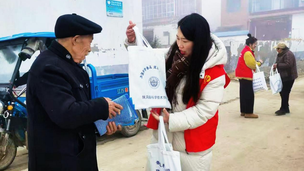 在蔬菜大棚,焦运来现场“把脉问诊”,针对黄瓜叶片发黄问题,指出底肥未充分腐熟的症结,帮助大家解决种植难题。同时,县科协志愿者与梅桥村科普小组组成宣传小队,为村民们发放《家庭应急手册》《防诈骗手册》等科普图书220册,送上印着科普标语的围裙、雨伞等宣传物品57件,讲解用电用气安全、防诈骗等实用知识,贴心的服务让村民们连连称赞。