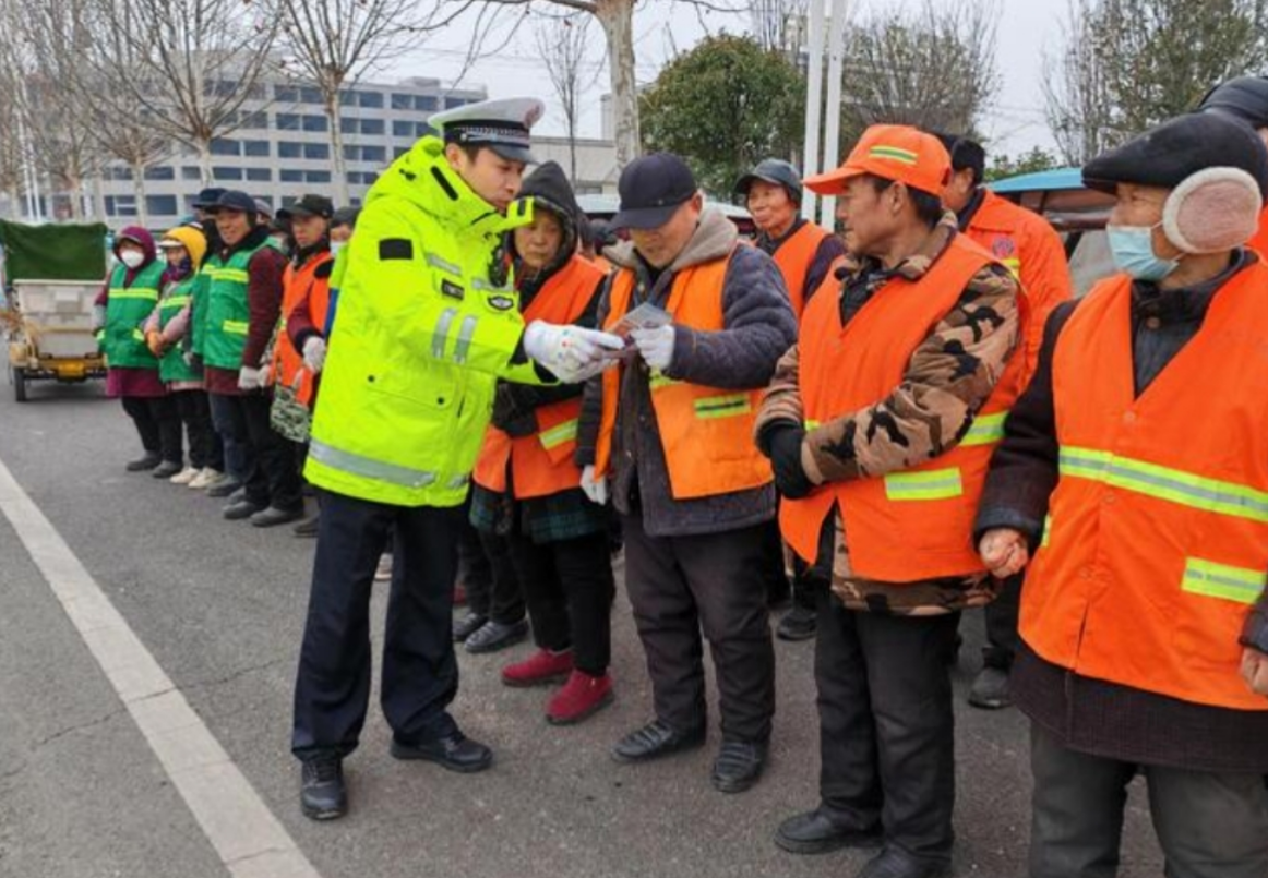 本台讯 为切实增强环卫工人在冬季恶劣天气下的交通安全防护能力,预防和减少涉及环卫工人交通事故的发生,按照周口市公安局交警支队统一部署,近日,交警支队直属四大队带领民警前往港区环卫服务中心,开展冬季交通安全主题宣传活动。