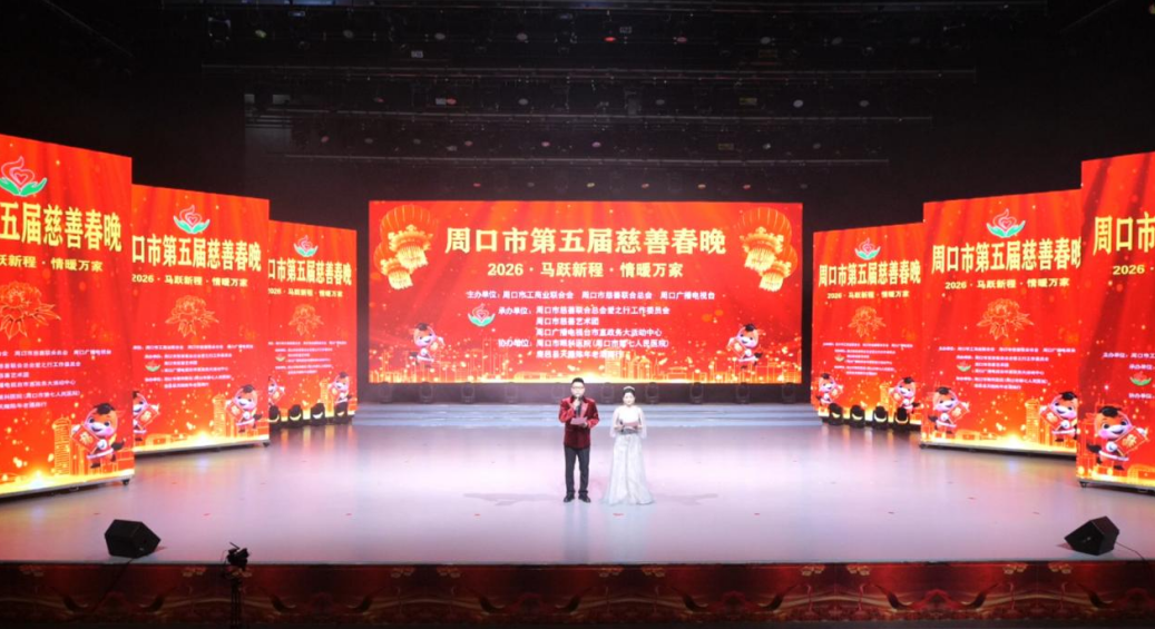 本台讯 2月3日,由周口市工商业联合会、周口市慈善联合总会、周口市广播电视台联合主办,周口市慈善联合总会爱之行工作委员会、周口市慈善艺术团、周口广播电视台市直政务大活动中心共同承办的周口市第五届慈善春晚“马跃新程·情暖万家”,在周口广电奥斯卡影视城演播大厅温情上演。整场晚会以慈善为魂、艺术为媒,为现场观众呈现了一场兼具温度与力量的公益盛宴。