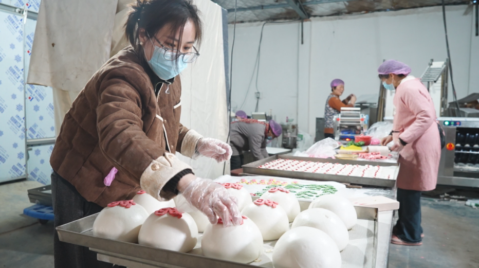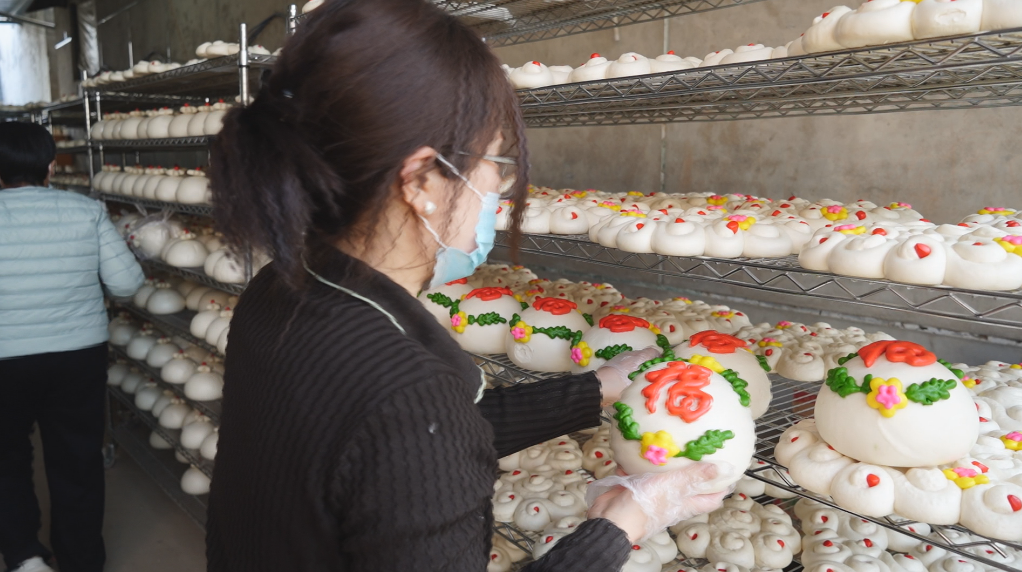 据了解,如今,该配送中心的花大馍和枣花馍已成为当地春节市场的抢手货,传统民俗与现代创意相结合,让乡土特色食品焕发出新的生机。
