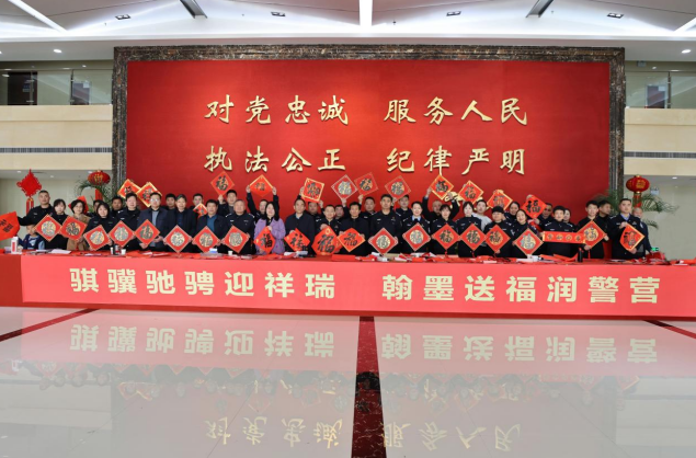 据了解,在近三个小时的活动中,书法家们累计创作春联600余副、“福”字300余枚,每一副作品都承载着他们对公安队伍的深情厚意,每一笔丹青都凝聚着对平安建设的美好期许。 此次活动既是弘扬传统文化、陶冶民辅警情操的文化举措,也是落实从优待警、凝聚警心士气的生动实践,使欢乐祥和的节日氛围浸润警营,让归属感与荣誉感在民辅警心中深深扎根。
