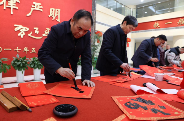 本台讯 在新春佳节来临之际,为丰富警营文化生活,弘扬中华优秀传统文化,凝聚警心、鼓舞士气,2月12日,周口市书法家协会2026年新春公益活动走进周口市公安局,为民辅警写春联、送祝福。