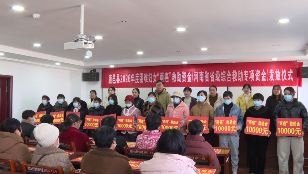 本台讯 春回大地,情暖鹿邑。2月14日上午,鹿邑县举行2026年度困难妇女“两癌”救助资金(河南省省级综合救助专项资金)发放仪式。鹿邑县68名患有乳腺癌或宫颈癌的困难妇女,每人获得了10000元的省级综合救助专项资金,共计发放救助金68万元,将党和政府的温暖与关怀送到了患病妇女的心坎上。