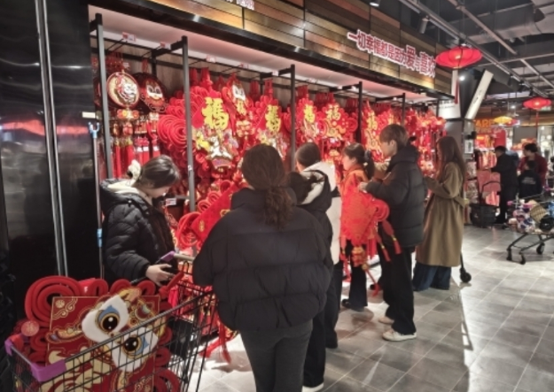 收银台前,满载年货的市民排起长队,购物车里装满了食材、礼品和节日饰品。从喜庆的新春装饰到新鲜的生鲜食材,从香甜的糖果坚果到寓意吉祥的年宵花,每一份年货都承载着市民对新春的美好期盼,处处彰显着温馨浓郁的新春年味。