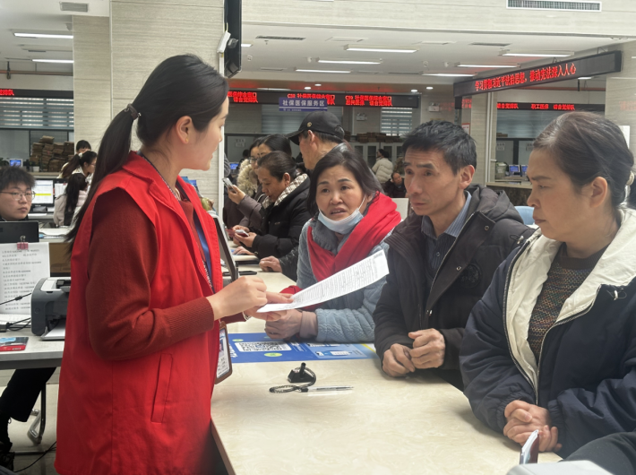 大厅内,由业务骨干组成的志愿服务队格外亮眼。身穿红色马甲的志愿者们分布在大厅入口、取号区、等候区及高频业务办理区,协助群众取号、预审材料、解答疑问、维护秩序,成为人流中的“暖心导航”。通过精准分流、靠前服务,有效缩短群众排队等候时间,大幅提升运行效率。