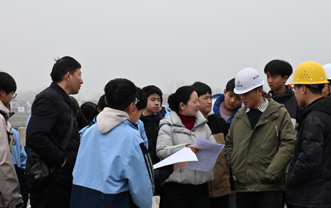 周口港的形成条件、功用是什么?它如何赋能家乡经济发展?怎样运用所学的数学知识测量河道的宽度?上午9时,在周口港中心港区范营作业区,同学们在地理老师李园杰、数学老师王春明的引导下观察沙颍河河道走向、港口泊位布局,结合工作人员的讲解,与老师和工作人员讨论周口港的形成条件、功用等问题。