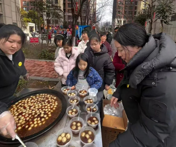 活动现场暖意融融,社区工作人员和志愿者们早早地支起汤锅,将一颗颗雪白饱满的汤圆放入沸水中。不一会儿,热气腾腾、香甜软糯的汤圆便出锅了。工作人员将一碗碗寓意着团圆美满的汤圆分发给来往的居民,大家一边品尝着美味的汤圆,一边互道节日祝福,甜蜜的滋味在舌尖绽放,温暖的情谊在邻里间流淌。